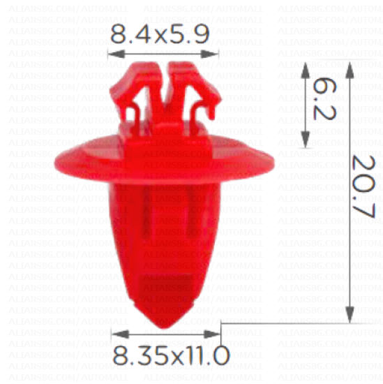 163941 Щипка за външен долен праг и за задна лайстна калник за Toyota Hilux 4 Runner Highlander RAV4 Land Cruiser Tacoma Tundra Продукта е подходящ за следните видове автомобили: Приложение - монтиране на странични лайсни и корпус на резервното колело на петата врата Toyota Hilux от 1997 до 2006 За отвор : 11 мм. Уточнение ! Размерите са с информативен характер. Възможно е отклонение : +/- 1 мм, което не оказва влияние върху монтажа или качеството на артикула. Цената е за 1 пакет - съдържащ 5 броя крепежи. |