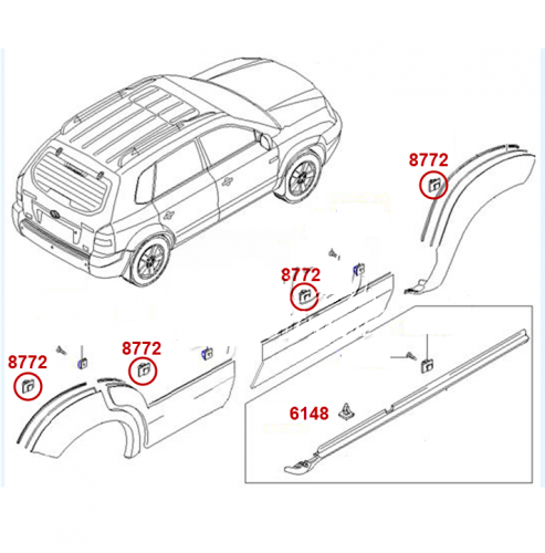 163696 Щипка за външни лайстни и лайстни под под вратите и калниците прагове за Hyundai Kia